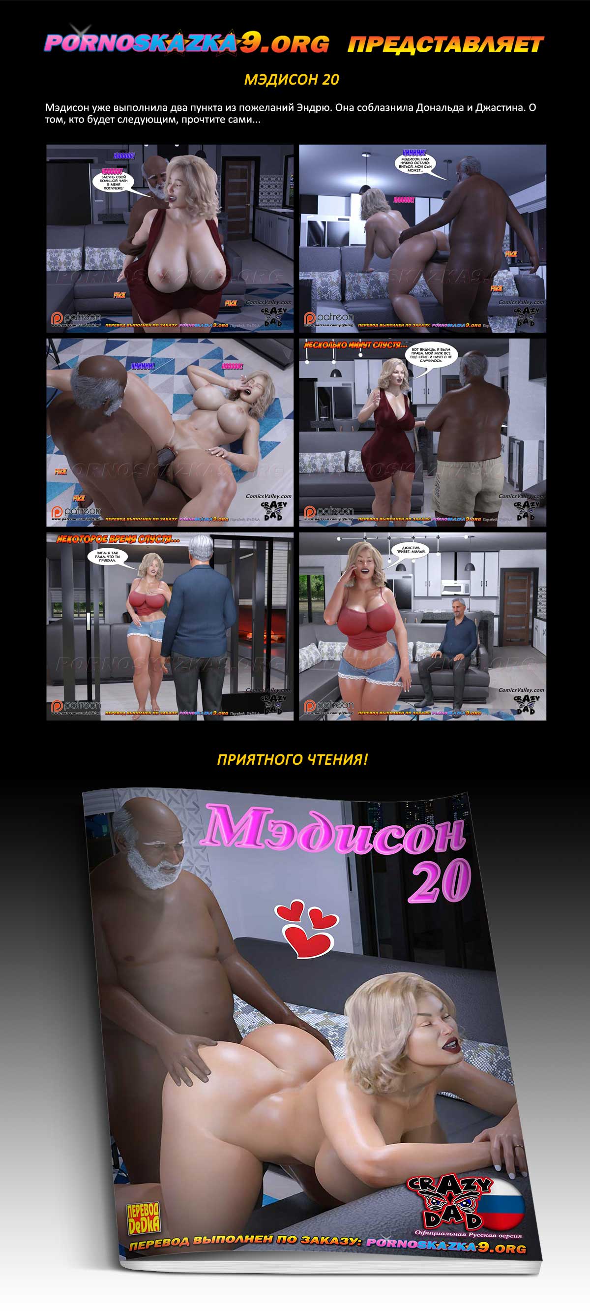 Порно комикс «Мэдисон. Часть 20». Мэдисон уже выполнила два пункта из пожеланий Эндрю. Она соблазнила Дональда и Джастина. О том, кто будет следующим, прочтите сами…